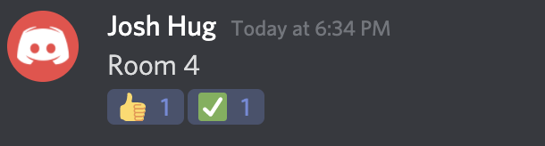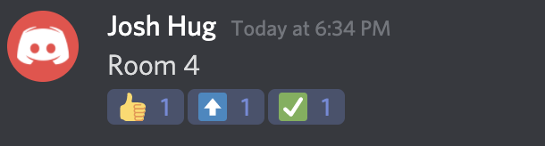 - lab-queue: This text channel serves as the place to queue up for help with the lab assignment. Simply drop a message with the room number you are in. When a TA or an academic intern will come to assist you, they will react to your message with a thumbs up. When they are done helping, they will react to your message with a checkmark. If you are assisted by an academic intern, and the problem needs to be escalated to the lab TA, the academic intern will react to your message with an up-arrow, indicating that a TA should come to you when they become available. These will help you and other students see how the queue is being processed.