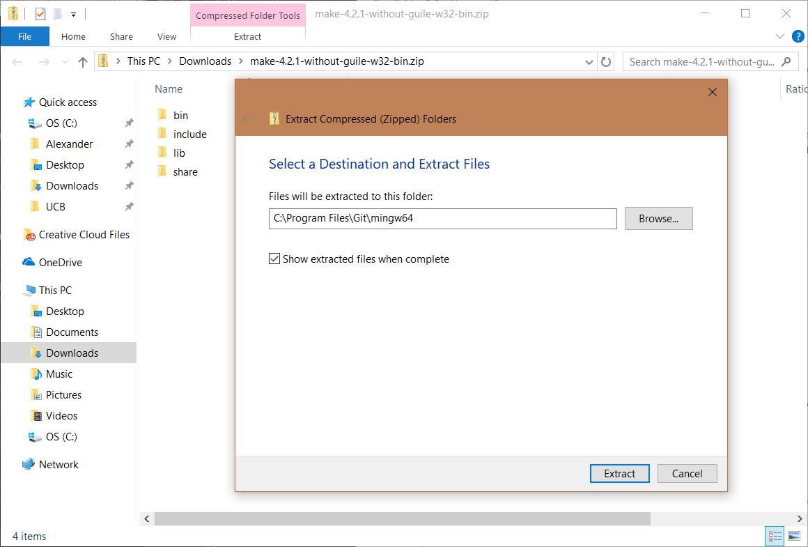 Extracting to Git/mingw64